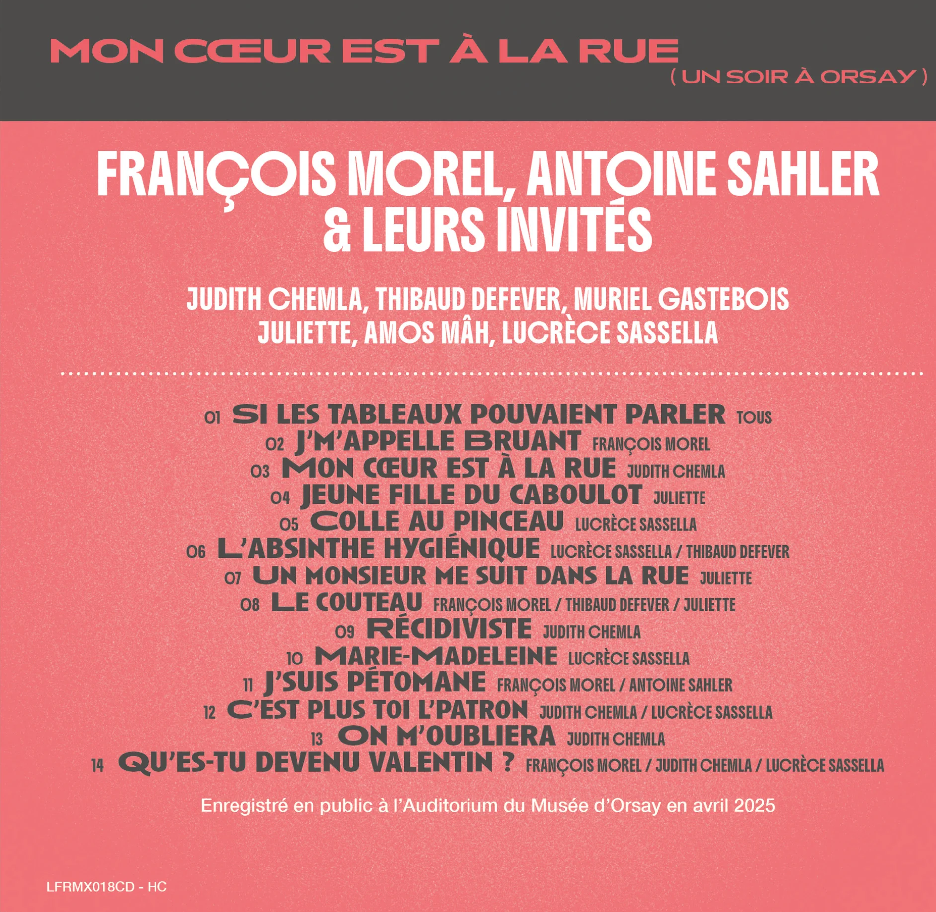 Le disque « Mon cœur est à la rue » propose 14 chansons enregistrées lors de cette série de concerts.
