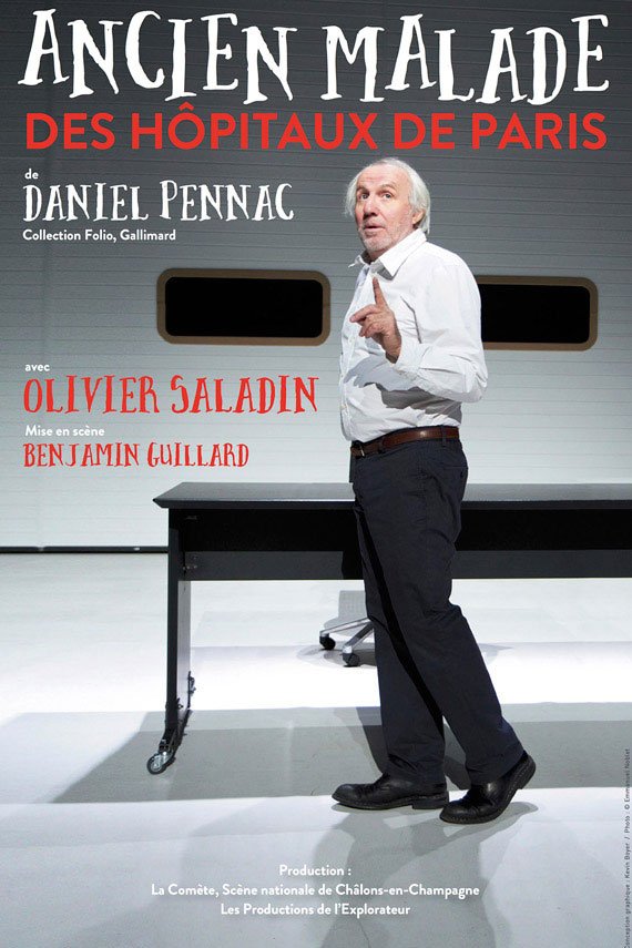Baptisé monologue gesticulatoire par Daniel Pennac, la nouvelle Ancien malade des hôpitaux de Paris est une pantomime verbaledont chaque phrase est un geste et qui va comme un gant de chirurgien au talent protéiforme de Olivier Saladin, ex- complice des Deschien set des Deschamps.